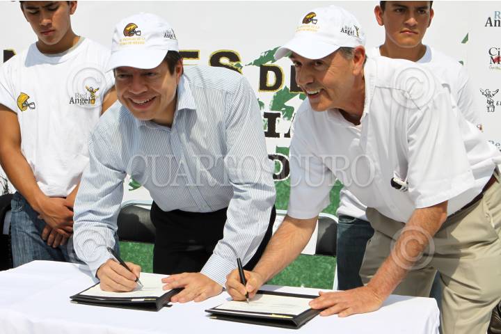 MÉXICO, D.F., 28ENERO2011.- Mario Delgado, secretario de Educación del Distrito Federal durante la presentación del equipo de fútbol americano "Ángeles del D.F." de la categoría juvenil de la ONEFA que se realizo en la Ciudad Deportiva. FOTO: RODOLFO ANGULO/CUARTOSCURO.COM
