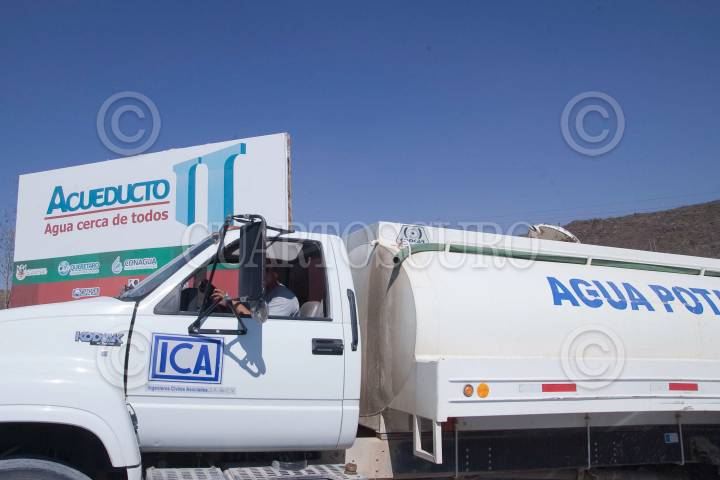 CADEREYTA DE MONTES, QUERÉTARO, 29ENERO2011.- Acueducto II es una obra de infraestructura hidráulica iniciada 2007 en el sexenio pasado, y está a unos días de inaugurarse. La mayor parte de su obra está oculta entre los cerros de la lejanía desde el municipio de Cadereyta. Su espectacularidad se encuentra lejos de los ojos de los consumidores del precioso líquido. Sin embargo aun existen las dudas por expertos en la materia de química sobre si el agua estaría contaminada por las filtraciones de la presa de Zimapán que lleva altos niveles de plomo y arsénico. La obra se construyó en medio de manifestaciones de inconformidad de los comuneros por la invasión de tierras, bloqueos de campesinos por el incumplimiento de los acuerdos y la lista de posicionamientos de los grupos ecologistas. FOTO: DEMIAN CHÁVEZ/CUARTOSCURO.COM