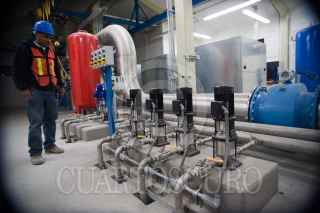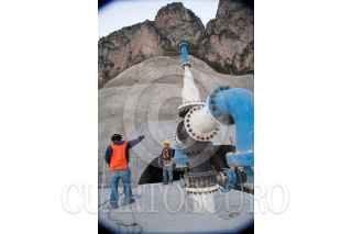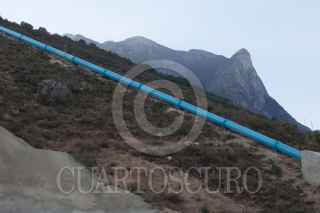 CADEREYTA DE MONTES, QUERÉTARO, 29ENERO2011.- Acueducto II es una obra de infraestructura hidráulica iniciada 2007 en el sexenio pasado, y está a unos días de inaugurarse. La mayor parte de su obra está oculta entre los cerros de la lejanía desde el municipio de Cadereyta. Su espectacularidad se encuentra lejos de los ojos de los consumidores del precioso líquido. Sin embargo aun existen las dudas por expertos en la materia de química sobre si el agua estaría contaminada por las filtraciones de la presa de Zimapán que lleva altos niveles de plomo y arsénico. La obra se construyó en medio de manifestaciones de inconformidad de los comuneros por la invasión de tierras, bloqueos de campesinos por el incumplimiento de los acuerdos y la lista de posicionamientos de los grupos ecologistas. FOTO: DEMIAN CHÁVEZ/CUARTOSCURO.COM