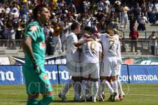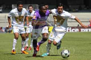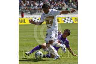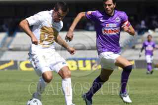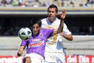 MÉXICO, D.F., 30ENERO2011.- Sergio Perez de los Rayados del Monterrey pelea el balón con Leandro Augusto de los Pumas de la UNAM durante el encuentro que se realizo en el Estadio Olímpico Universitario de la jornada 4 del Torneo Clausura 2011 del fútbol mexicano en donde los Pumas vencieron 3 goles por 2 a los Rayados. FOTO: RODOLFO ANGULO/CUARTOSCURO.COM