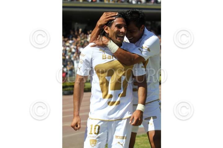 MÉXICO, D.F., 30ENERO2011.- Sergio Perez de los Rayados del Monterrey pelea el balón con Leandro Augusto de los Pumas de la UNAM durante el encuentro que se realizo en el Estadio Olímpico Universitario de la jornada 4 del Torneo Clausura 2011 del fútbol mexicano en donde los Pumas vencieron 3 goles por 2 a los Rayados. FOTO: RODOLFO ANGULO/CUARTOSCURO.COM