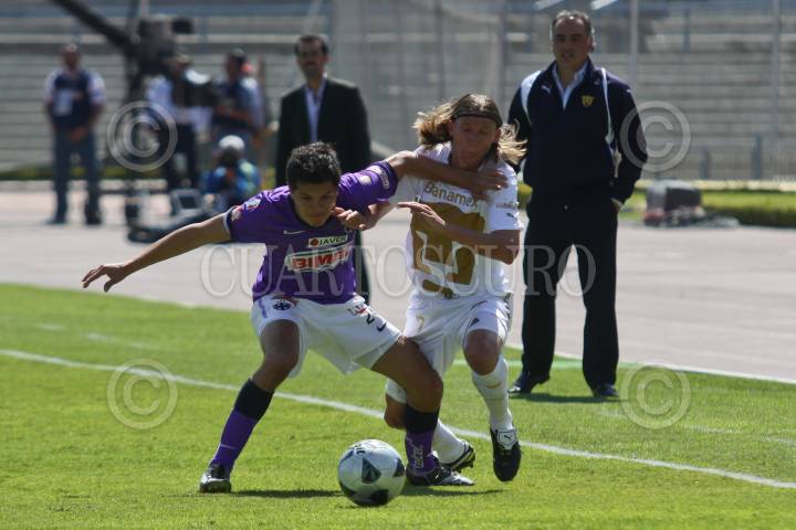 MÉXICO, D.F., 30ENERO2011.- Sergio Perez de los Rayados del Monterrey pelea el balón con Leandro Augusto de los Pumas de la UNAM durante el encuentro que se realizo en el Estadio Olímpico Universitario de la jornada 4 del Torneo Clausura 2011 del fútbol mexicano en donde los Pumas vencieron 3 goles por 2 a los Rayados. FOTO: RODOLFO ANGULO/CUARTOSCURO.COM