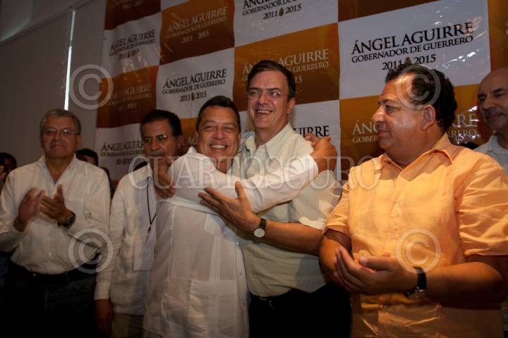 ACAPULCO GUERRERO, 30ENERO2011.- Ángel Aguirre, candidato de la Coalición “Guerrero nos Une” acompañado de Manuel Camacho Solís, Coordinador del Día, Jesús Ortega, Presidente Nacional del PRD, Marcelo Ebrard Casaubon, Jefe de Gobierno Capitalino, Luis Walton, Presidente de Convergencia y Jesús Zambrano Diputado Federal del PRD, dieron a conocer la virtual victoria en la contienda electoral para gobernador del estado de Guerrero. FOTO: GUILLERMO PEREA/CUARTOSCURO.COM