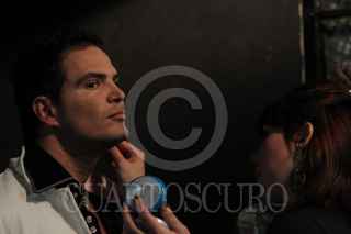 MÉXICO, D.F., 31ENERO2011.- El actor y cantante Julio Camejo, en compañía de el grupo musical La Klave, realizaron las primeras escenas del vídeo musical llamado "Romper el Hielo" en un bar de la zona de la Condesa. FOTO: ENRIQUE ORDÓÑEZ/CUARTOSCURO.COM