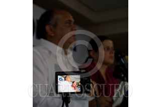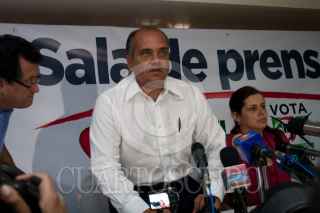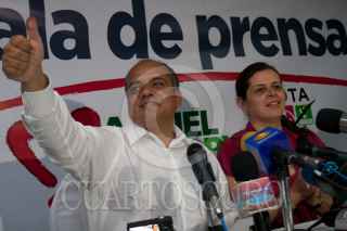 ACAPULCO GUERRERO, 31ENERO2011.- Manuel Añorve, candidato de la coalición “Vamos por Tiempos Mejores” acompañado de su esposa Julieta Fernández, anuncio que impugnará la elección para gobernador en la que concedió el domingo pasado. FOTO: GUILLERMO PEREA/CUARTOSCURO.COM