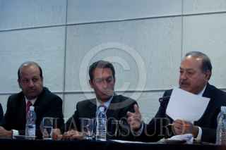 MÉXICO, 31ENERO2011.- Carlos Slim, presidente honorario vitalicio de Grupo Carso, durante una conferencia de prensa en la que dio a conocer las perspectivas a futuro de todas sus empresas. FOTO: IVÁN STEPHENS/CUARTOSCURO.COM