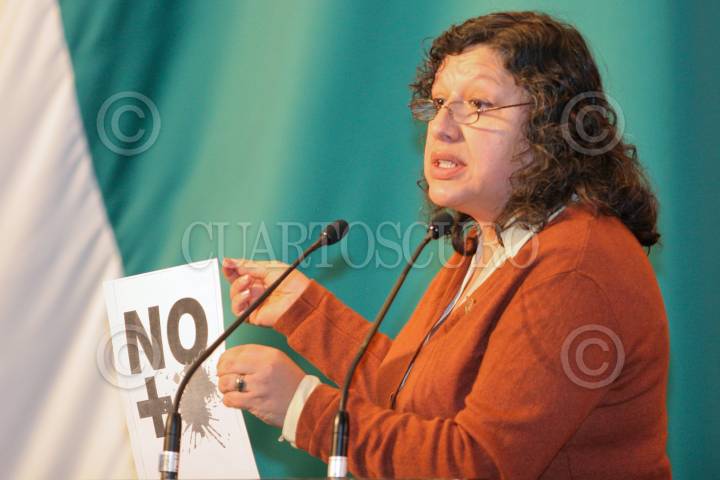 MÉXICO, D.F., 31ENERO2011.- Teresa Guadalupe Reyes Sahagún, diputada del PT entrego una hoja de papel con el logotipo de "No Más Sangre" al Secretario de Seguridad Pública Federal, Genaro Garcia Luna, durante la comparecencia ante la Primera Comisión de la Permanente de la Cámara de Diputados. FOTO: SAÚL LÓPEZ/CUARTOSCURO.COM