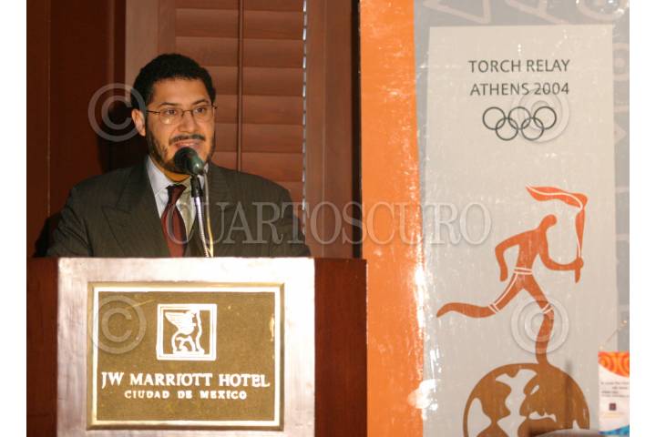 México, D.F., 11JUNIO2004.- Martí Batres, subsecretario de gobierno del DF, presentó la ruta que recorrerá la Antorcha Olímpica en la Ciudad de Mèxico. FOTO: Moisés Pablo/CUARTOSCURO.COM