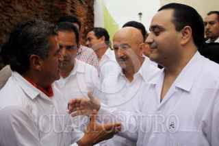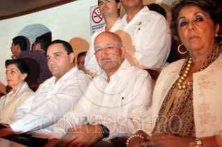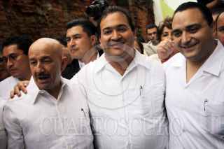 TLACOTALPAN, VERACRUZ., 02FEBRERO2011.- Roberto Borge Ángulo, gobernador electo de Quintana Roo y Carlos Salinas de Gortari, ex-presidente de México, coincidieron en el Teatro de la Ciudad para la presentación del libro fotográfico "Tlacotalpan Vive". FOTO: FÉLIX MÁRQUEZ/CUARTOSCURO.COM