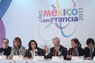 MÉXICO, D.F., 03FEBRERO2011.- Alfonso de Mária y Campos, titular del INAH; Gloria Guevara, titular de la Secretaria de Turismo; Lourdes Aranda, subsecretaria de Relaciones Exteriores; Daniel Parfait, embajador de Francia en México y María Stavenhagen titular del IMCINE durante una conferencia en donde se dieron a conocer diversas actividades que se realizaran en varias ciudades en Francia como parte del programa "Año 2011 México en Francia", dicha conferencia se realizo en la Secretaria de Relaciones Exteriores. FOTO: RODOLFO ANGULO/CUARTOSCURO.COM