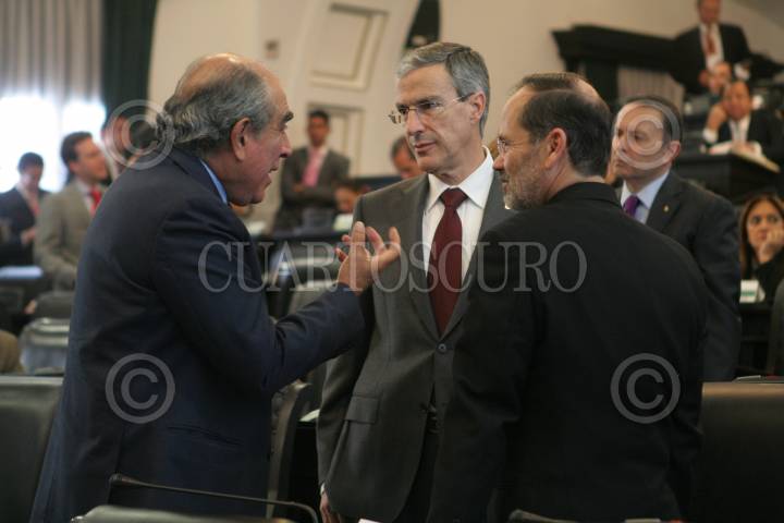 MÉXICO D.F., 03FEBRERO2011.- Los senadores José González Morfín, coordinador, Santiago Creel y Gustavo Madero, dirigente nacional panista, durante la sesión en la Cámara de Senadores. FOTO: MOISÉS PABLO/CUARTOSCURO.COM