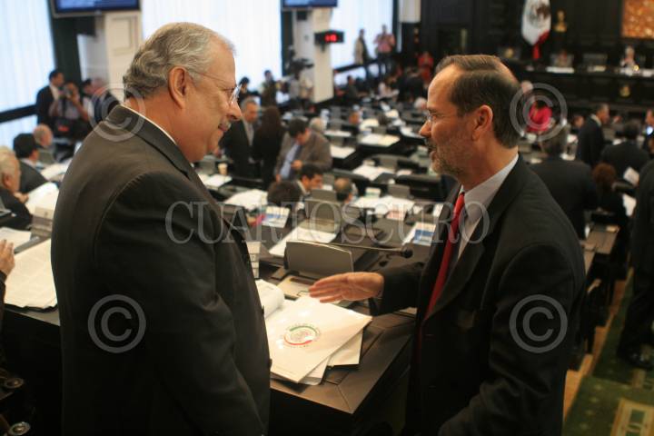 MÉXICO D.F., 03FEBRERO2011.- Los senadores José González Morfín, coordinador, Santiago Creel y Gustavo Madero, dirigente nacional panista, durante la sesión en la Cámara de Senadores. FOTO: MOISÉS PABLO/CUARTOSCURO.COM