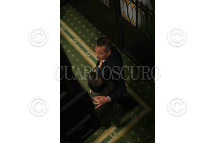 MÉXICO D.F., 03FEBRERO2011.- Los senadores José González Morfín, coordinador, Santiago Creel y Gustavo Madero, dirigente nacional panista, durante la sesión en la Cámara de Senadores. FOTO: MOISÉS PABLO/CUARTOSCURO.COM