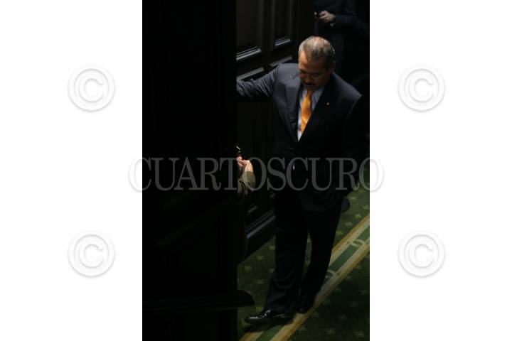 MÉXICO D.F., 03FEBRERO2011.- Los senadores José González Morfín, coordinador, Santiago Creel y Gustavo Madero, dirigente nacional panista, durante la sesión en la Cámara de Senadores. FOTO: MOISÉS PABLO/CUARTOSCURO.COM
