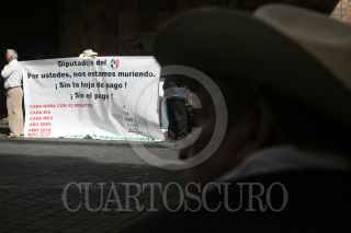 MÉXICO D.F., 03FEBRERO2011.- Personas de la tercera edad que integran la organización Braceroproa se manifestaron afuera de la Cámara de Senadores. Los manifestantes le pidieron a la Secretaría de Gobernación (SG) publique ya las reglas de operación para que inicie la distribución de los 800 millones de pesos autorizados por la Cámara de Diputados para el pago de apoyo social a los exbraceros que a mediados del siglo pasado laboraron en los campos agrícolas de Estados Unidos. FOTO: MOISÉS PABLO/CUARTOSCURO.COM