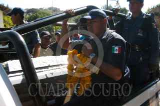 CHILPANCINGO, GUERRERO, 03FEBRERO2011.- Homenaje póstumo que le fue rendido en el cuartel de la Secretaria de Seguridad Publica Municipal (SSPM) al comandante de dicha corporación Jose Guadalupe de la Cruz Ruano luego de que fuera asesinado al ser emboscado por un grupo de sujetos fuertemente armados en la comunidad de Palo Blanco municipio de Chilpancingo cuando regresaba después de participar en un operativo donde fue detenido el comisario de la comunidad de El Tejocote con posesión de varios kilos de goma de opio. Cabe mencionar que después del homenaje fue trasladado al panteón nuevo donde fue sepultado, acompañándolo hasta su ultima morada familiares, amigos y compañeros de trabajo. FOTO: OSCAR ALVARADO/CUARTOSCURO.COM
