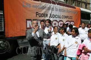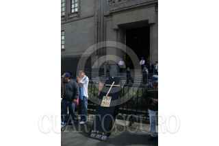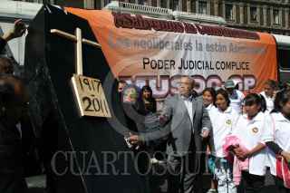 MÉXICO, D.F., 04FEBRERO2011.- Benito Bahena, dirigente de la Alianza de Tranviarios, encabezó una manifestación afuera de la Suprema de Corte de Justicia de la Nación en la cual se promulgó simbólicamente la muerte de la Constitución. FOTO: MOISÉS PABLO/CUARTOSCURO.COM