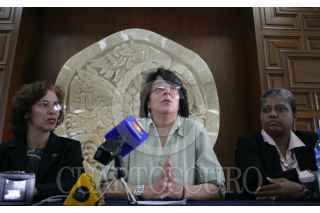México, D.F., 12JUNIO2004.- Ana Rivera, Ximena Machicao y Gucira de Oliveira, integrantes de ONG que procuran los derechos de las mujeres, dieron una conferencia de prensa para reafirmar su postura ante la comunidad internacional ante temas como la justicia, el desarrollo y la paz. FOTO: Moisés Pablo/CUARTOSCURO.COM