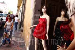 QUERÉTARO, QUERÉTARO, 04FEBRERO2011.- Tres maniquies posan sobre la avenida Hidalgo mientras una señora pasea a su hijo en una carreola. Aspectos de la Vida Cotidiana del estado de Querétaro. FOTO: MISAEL VALTIERRA/CUARTOSCURO.COM