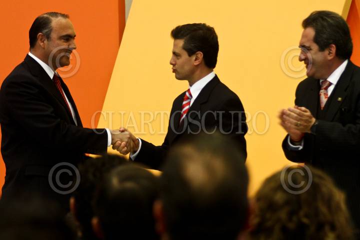 QUERÉTARO, QUERÉTARO, 05FEBRERO2011.- Enrique Peña Nieto, Gobernador del Estado de México, saluda a un asistente al final de la inauguración del nuevo Centro de Convenciones de Queretaro, evento que encabezó José Calzada Rovirosa, Gobernador del Estado. FOTO: MISAEL VALTIERRA/CUARTOSCURO.COM
