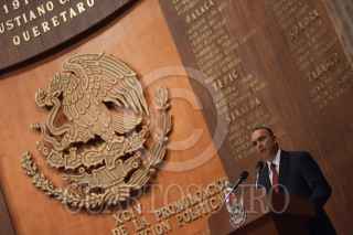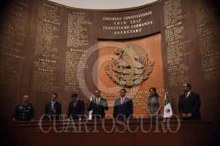 QUERÉTARO, QUERÉTARO, 05FEBRERO2011.- Posterior al actor del aniversario 94 de la Constitución mexicana; devela el gobernador del estado José Calzada y el presidente Municipal Francisco Domínguez, busto en honor a Venustiano Carranza, importante político que organizó el movimiento constitucionalista. FOTO: DEMIAN CHÁVEZ/CUARTOSCURO.COM