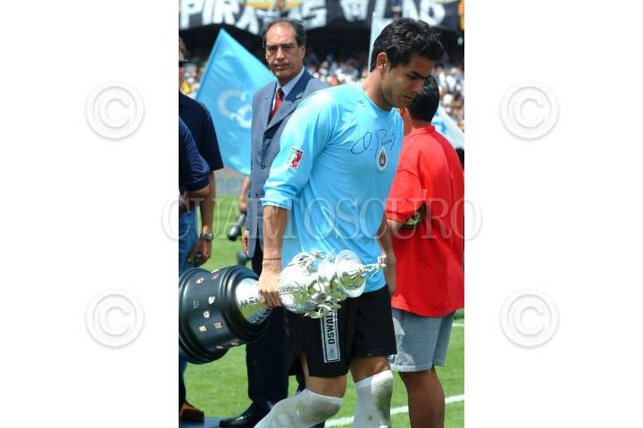 MÉXICO, D.F. 13JUNIO2004.- Oswaldo Sanchez (portero de Chivas) recibió la copa de segundo lugar del torneo de apertura 2004. FOTO: Iván Stephens/CUARTOSCURO.COM