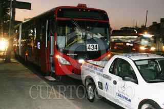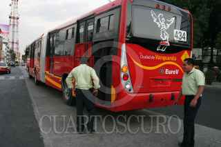 MÉXICO D.F., 08FEBRERO2011.- A horas de que se inaugurara la línea tres del metrobús se registraron fallas mecánicas en los camiones articulados, es el caso de la unidad 434 que se quedo sin servicio en el cruce de las avenidas Balderas y Chapultepec. FOTO: SAÚL LÓPEZ/CUARTOSCURO.COM