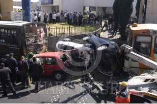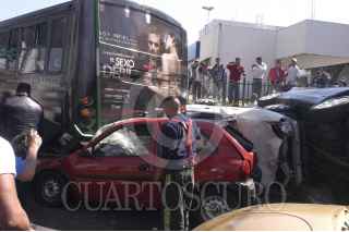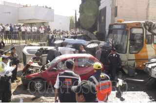 MÉXICO, D.F., 09FEBRERO2011.- Una persona lesionada fue el saldo de un choque entre dos unidades de transporte público, cuatro vehículos particulares y un taxi después de impactarse cuando circulaban sobre la avenida San Jerónimo al cruce con el Periférico en la colonia Jardines del Pedregal. FOTO: LUIS CARBAYO/CUARTOSCURO.COM