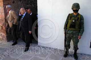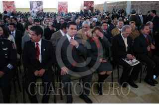 GUADALUPE, ZACATECAS, 09FEBRERO2011.- El gobernador Miguel Alonso Reyes presentó el Programa Estatal de Seguridad Pública. En el acto hizo una serie de anuncios para acompañar y reforzar las acciones, entre los que destaca el acuerdo de coordinación entre la Secretaría de la Defensa Nacional (Sedena) y el Gobierno del Estado, para que se sumen más efectivos al cuidado del territorio estatal. Ante autoridades civiles y militares, así como representantes de los gobiernos municipales y federal, académicos, legisladores, empresarios y líderes religiosos, afirmó que la llegada de efectivos bien organizados, equipados y adiestrados contribuirá notablemente a coadyuvar en mantener la paz social que demandan las familias. FOTO: ADOLFO VALTIERRA/CUARTOSCURO.COM
