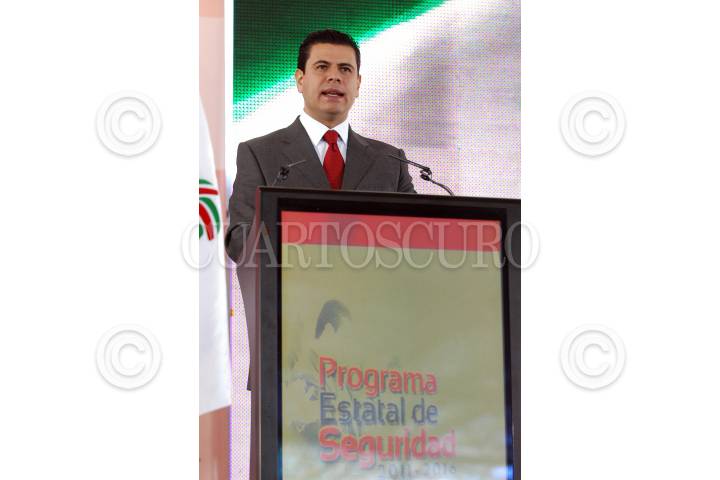 GUADALUPE, ZACATECAS, 09FEBRERO2011.- El gobernador Miguel Alonso Reyes presentó el Programa Estatal de Seguridad Pública. En el acto hizo una serie de anuncios para acompañar y reforzar las acciones, entre los que destaca el acuerdo de coordinación entre la Secretaría de la Defensa Nacional (Sedena) y el Gobierno del Estado, para que se sumen más efectivos al cuidado del territorio estatal. Ante autoridades civiles y militares, así como representantes de los gobiernos municipales y federal, académicos, legisladores, empresarios y líderes religiosos, afirmó que la llegada de efectivos bien organizados, equipados y adiestrados contribuirá notablemente a coadyuvar en mantener la paz social que demandan las familias. FOTO: ADOLFO VALTIERRA/CUARTOSCURO.COM