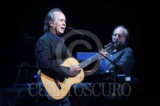SANANDRÉS CHOLULA, PUEBLA, 10ENERO2011.- El trovador español, Joan Manuel Serrat, se presentó en concierto la noche de ayer en el auditorio del Complejo Cultural Universitario de la Benemérita Universidad Autónoma de Puebla (BUAP), en la que deleitó al público con materiales de su más reciente producción discográfica "Hijos de la luz y la sombra". FOTO: FRANCISCO GUASCO/CUARTOSCURO.COM