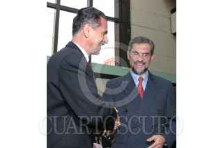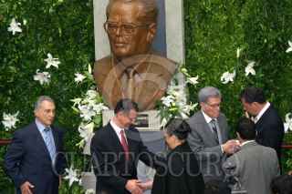 México, D.F. 21 JUNIO 2004.- Joaquin Gamboa Pascoe, Carlos Abascal, secretario de Trabajo, Beatriz Paredes, presidenta de la fundación Colosio, Leonardo Rodríguez Alcaine, lider de la CTM y Enrique Jackson, presidente de la cámara de senadores al terminar la guardia de honor al rededor del busto de Fidel Velazquez Sánchez en su VII aniversario luctuoso. Sánchez. FOTO: Sandra Perdomo/CUARTOSCURO.COM