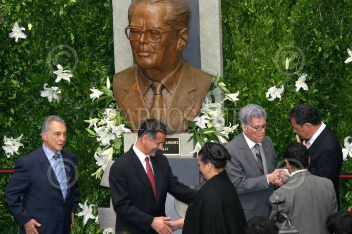 México, D.F. 21 JUNIO 2004.- Joaquin Gamboa Pascoe, Carlos Abascal, secretario de Trabajo, Beatriz Paredes, presidenta de la fundación Colosio, Leonardo Rodríguez Alcaine, lider de la CTM y Enrique Jackson, presidente de la cámara de senadores al terminar la guardia de honor al rededor del busto de Fidel Velazquez Sánchez en su VII aniversario luctuoso. Sánchez. FOTO: Sandra Perdomo/CUARTOSCURO.COM
