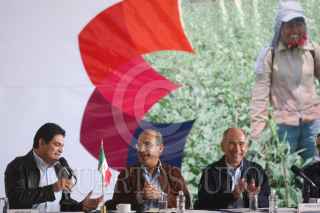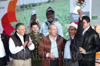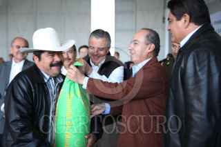 CULIACÁN, SINALOA, 11FEBRERO2011.- Mario López Valdez, gobernador de la entidad, Felipe Calderón Hinojosa, presidente de los Estados Unidos Mexicanos y Francisco Javier Mayorga Castañeda, titular de la SAGARPA, durante la evaluación y atención a productores agrícolas por la contingencia climatológica en el estado. FOTO: ADOLFO JASSO/CUARTOSCURO.COM