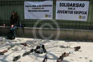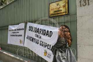 MÉXICO, D.F., 11FEBRERO2011.- Integrantes de organizaciones civiles se manifestaron frente a la embajada de Egipto, ubicada en la zona de Polanco donde festejaron el triunfo de la revolución juvenil y la renuncia del presidente Hosni Mubarak. FOTO: SAÚL LÓPEZ/CUARTOSCURO.COM