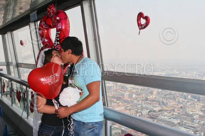 MÉXICO, D.F., 12FEBRERO2011.- Parejas de novios contrajeron nupcias de manera simbólica en el mirador de la Torre Latinoamericana, donde desde este sábado y hasta el 14 de febrero se realizan estas "ceremonias" por el día del Amor. FOTO: ISAAC ESQUIVEL/CUARTOSCURO.COM