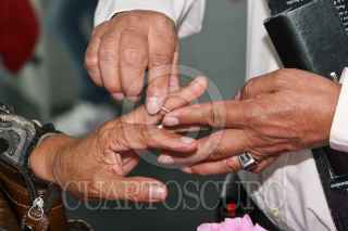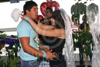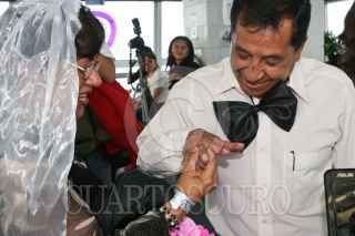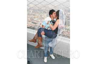 MÉXICO, D.F., 12FEBRERO2011.- Parejas de novios contrajeron nupcias de manera simbólica en el mirador de la Torre Latinoamericana, donde desde este sábado y hasta el 14 de febrero se realizan estas "ceremonias" por el día del Amor. FOTO: ISAAC ESQUIVEL/CUARTOSCURO.COM