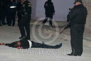 CIUDAD NEZAHUALCOYOTL, ESTADO DE MÉXICO, 13FEBRERO2011.- Una mujer fue encontrada sin vida, desnuda y con el tiro de gracia en la Ignacio Zaragoza, entre 20 de Noviembre y 15 de Septiembre, en la colonia Loma Bonita, dicho lugar se encuentra ubicado muy cerca de donde fueron encontrados los siete cuerpos acribillados en la colonia San Agustin. Elementos del ejército mexicano, policía estatal, ministerial y municipal montaron un operativo durante la madrugada de hoy para resguardarel cuerpo y ubicar a los presuntos responsables. FOTO: SAÚL LÓPEZ/CUARTOSCURO.COM