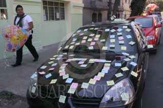 MÉXICO, D.F., 14FEBRERO2011.- Hoy dia del Amor y la Amistad, algunas personas demuestran con detalles su afecto a un ser querido como es el caso del dueño de éste vehículo ubicado en la calle de Edison en la colonia San Rafael. FOTO: SAÚL LÓPEZ/CUARTOSCURO.COM