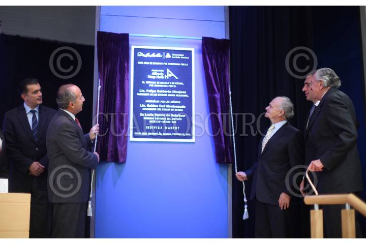MUNICIPIO DE SANTA CRUZ XOXOCOTLAN, OAXACA, 15FEBRERO2011.- Felipe Calderón Hinojosa, presidente de los Estados Unidos Mexicanos y el empresario Alfredo Harp Helú, durante la inauguración de la Universidad La Salle. FOTO: ALFREDO GUERRERO/CUARTOSCURO.COM