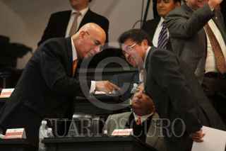 MÉXICO, D.F., 15FEBRERO2011.- El senador del PT Ricardo Monreal, conversa con sus compañeros legisladores durante la sesión ordinaria del Senado de la República. FOTO: RODOLFO ANGULO/CUARTOSCURO.COM