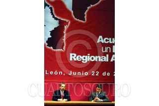 MONTERREY,N.L. 22JUNIO2004.- El mandatario estatal, Natividad González y el gobernador de Texas, Rick Perry, durante la ceremonia de la firmar un acuerdo para un progreso regional. FOTO: Jorge López/CUARTOSCURO.COM