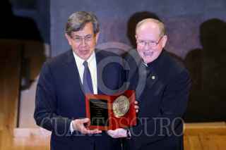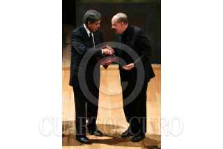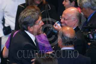 MÉXICO, D.F., 16FEBRERO2011.- Cuauhtémoc Cárdenas Solorzano, líder moral del PRD, recibió el premio Notre, en una ceremonia en el Colegio de San Ildefonso, acompañado de su esposa Celeste Solorzano. FOTO: ISAAC ESQUIVEL/CUARTOSCURO.COM