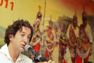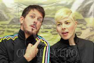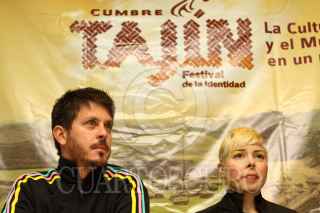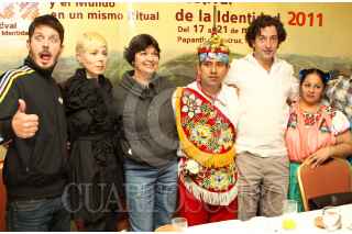 MEXICO, D.F., 17FEBRERO2011.- Teo, integrante del grupo Los Liquits; Ely Guerra y Salomón Bazbaz Lapidus director de Cumbre Tajin durante la conferencia de prensa donde se presentó Cumbre Tajin 2011 Festival de la Identidad que se realizará del 17 al 21 de Marzo en Papantla, Veracruz. FOTO: RODOLFO ANGULO/CUARTOSCURO.COM