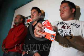 MÉXICO, D.F., 17FEBRERO 2011.- Erick Guerrero Reyes de 28, Oscar Ivan Blanco Rivera de 27 y Erick Sandoval Gómez de 27 fueron capturados en la madrugada en la esquina de las calle Zacataecas y Cuauhtémoc en la colonia Roma, por la portación de tarjetas de crédito apócrifas. Los presuntos delincuentes confesaron el "modus operandi" y señalaron que adquirían aparatos electrodomésticos en distintos locales comerciales con copias "pirata" de tarjetas de crédito por los que fueron puestos a disposición del ministerio público de la coordinación territorial CUH7. FOTO: LM ACEVEDO/CUARTOSCURO.COM