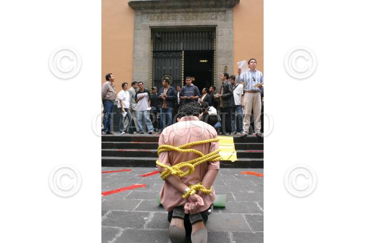 MEXDF 23JUNIO2004.- Un hombre se amarró y amordazó frente al senado de la república para protestar contra la delincuencia. FOTO: Iván Stephens/CUARTOSCURO.COM
