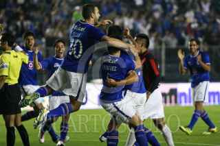 MÉXICO, D.F., 19FEBRERO2011.- Bellas animadoras apoyan a la Máquina Celeste de Cruz Azul, en la victoria ante los Zorros del Atlas por dos goles a uno, durante partido de la jornada 7 del Clausura 2011, disputado en el estadio Azul. FOTO: ISAAC ESQUIVEL/CUARTOSCURO.COM