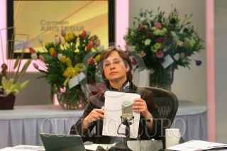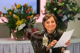 MÉXICO, D.F., 21FEBRERO2011.- Carmen Aristegui, periodista y conductora de la Primera emisión de MVS Noticias, regresó la mañana de hoy tras cesarla el pasado 7 de febrero por supuestas violaciones al código de ética de la radioemisora. La comunicadora mencionó al inicio del programa “ Es una victoria compartida” de radioescuchas y empresa, que dio el paso y revirtió la medida, dijo. FOTO: SAÚL LÓPEZ/CUARTOSCURO.COM