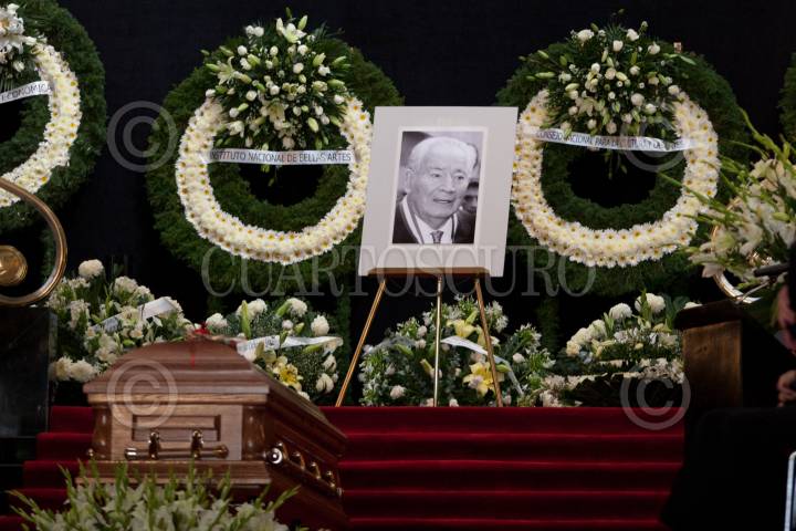 MÉXICO D.F., 21FEBRERO2011.- Encabezado por la presidenta del Conaculta, Consuelo Sáizar, Teresa Vicencio, directora del INBA y de su familia, el intelectual mexicano José Ezequiel Iturriaga Sauco (1912-2011) se le realizó un homenaje póstumo en el Palacio de Bellas Artes FOTO: GUILLERMO PEREA/CUARTOSCURO.COM