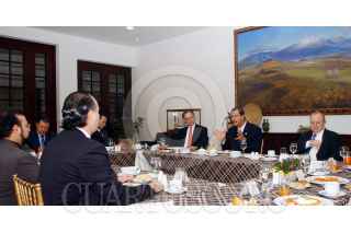 MEXDF 24JUNIO2004.- El presidente Vicente Fox, desayuno con integrantes de la Asociación de Editores de los Estados, llevada acabo en el Salón Blanco de la Residencia Oficial de Los Pinos. A la izquierda del jefe del ejeuitivo, Ildefonso Salido, presidente del consejo de administración de la cadena periodistica " El Debate de Sinaloa". FOTO: Ariel Guitierrez/CUARTOSCURO.COM
